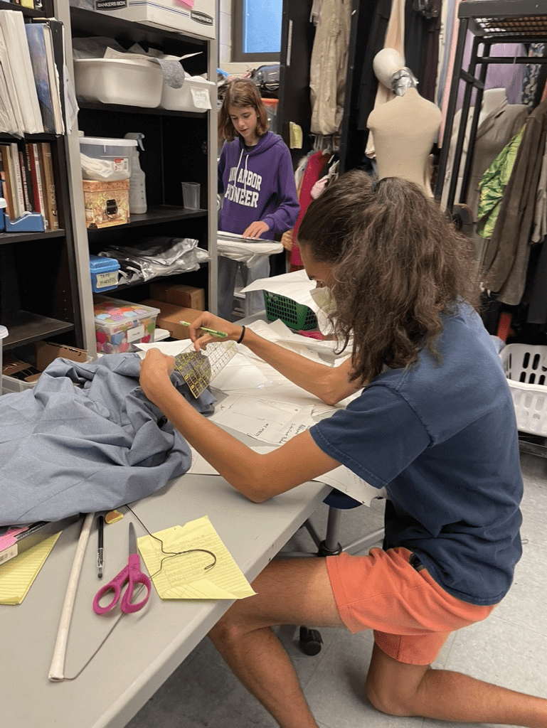 Junior Kiran Parekh is one of the costume crew heads for The Addams Family and has been involved in PTG since his freshman year. He is excited to work on the costumes for this show and recreate all the classic looks for the members of the Addams Family, alongside new designs for the Beinekes and the Ancestors: “All the ancestors are really neat, they’re all from different time periods, so that’s sort of fun to get to move around in time as opposed to having them all in one time period.”
