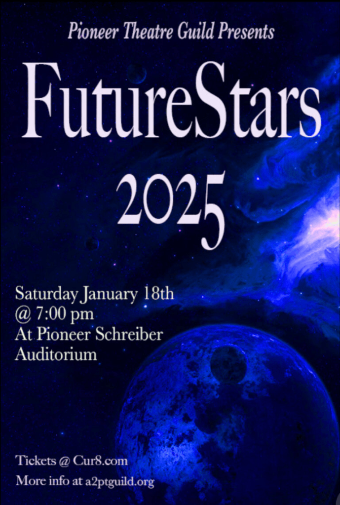 The Pioneer Theatre Guild’s FutureStars 2025 is back for its highly anticipated 23rd year, giving high school performers a chance to sing, dance, and compete in front of a packed crowd and local celebrity judges. Staged in Pioneer High School’s Schreiber Auditorium, this citywide talent competition features talented students from the Ann Arbor Public Schools, all vying for the prestigious title of FutureStar 2025!
